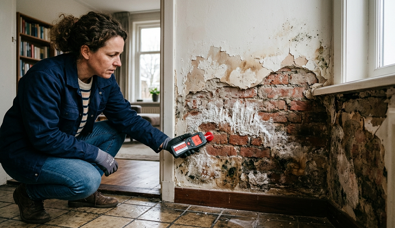 Direct Answer: Optrekkend vocht herken je aan vochtvlekken tot circa 1 meter hoogte, zoutaanslag, afbladderende verf en koude muren. Laat een erkende inspectie uitvoeren om oorzaak en juiste behandeling vast te stellen.